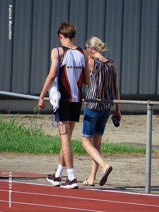 Het discuswerpen verloopt vandaag wat moeizamer voor Kenneth Baerts , toch nog 37m80 , niet slecht. In deze warme omgeving komt er toch iemand op het idee om een 400m te lopen. Lucus Struys, net geen pr toch een mooie 58"26 na het opvolgen van de richtlijnen van de master of 400m.