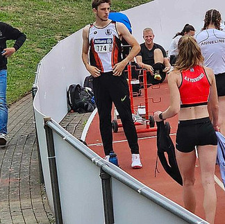 Kobe Dankaert doet 2 proeven mee vandaag, kogel weer oover de 10m met 10m07 en discuswerpen in 36m17, maar net geen Pr.